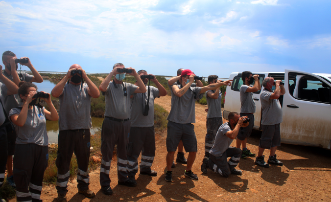 Con la ayuda de los responsables del parque natural del Delta del Ebro, hemos creado un protocolo y con un flujo continuo de información, tratamos de decidir en cada momento, cuál es la mejor actuación en cada situación. Como ejemplo este año tuvimos la guardería de polluelos de Charrán Patinegro colocándose en la entrada de las salinas por donde tenían que pasar los camiones. Por lo que colocamos señales, conos e informamos a los conductores de ir extremadamente lento en ese tramo de la pista para evitar atropellos de cualquier pollito. Otro ejemplo, el año pasado, fue una colonia de gaviotas picofinas que anidaba en los alrededores de una de nuestras bombas de agua. La bomba de agua se estropeó y necesitaba ser reemplazada, pero pesaba 500 kg por lo que necesitábamos entrar un vehículo pesado para transportarla y una grúa para levantarla pero evitando dañar la colonia de reproducción. Todo esto se ha logrado con esta colaboración público-privada.